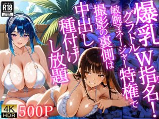 【4K/500枚】爆乳グラドルW指名!敏腕マネージャー特権で撮影の裏側は中出し種付けし放題